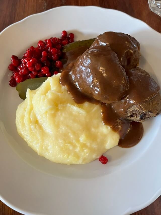 かなり肉々しいですが、ピクルスやリンゴンベリージャムと一緒に食べるとちょうどよくおいしかったです。