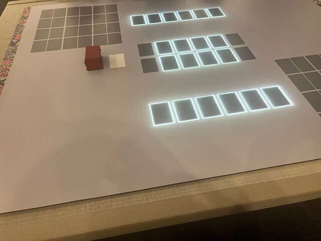 この光っている部分に花札を並べ、台に直接映し出される指示通りにすると、ルールを知らなくても花合わせができます。