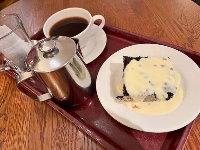 エスプラナーデイカフェでブルーベリーケーキとコーヒーで休憩を。
