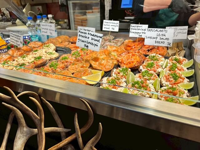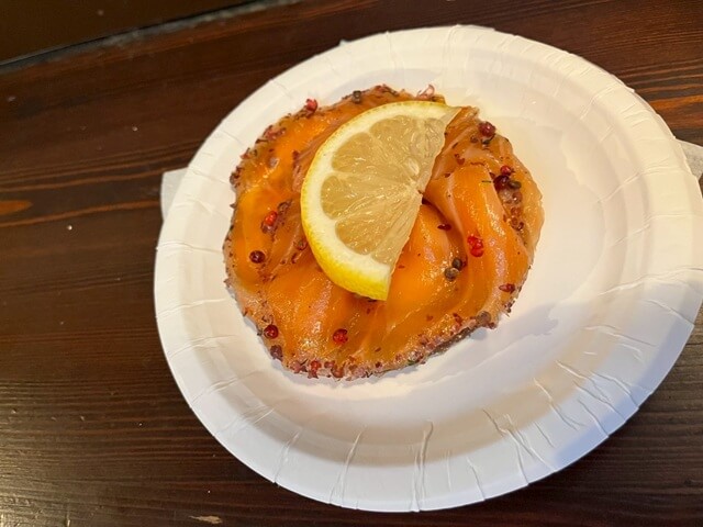 気を取り直して、他のお店を見ているとおいしそうなサーモンのオープンサンドを発見。