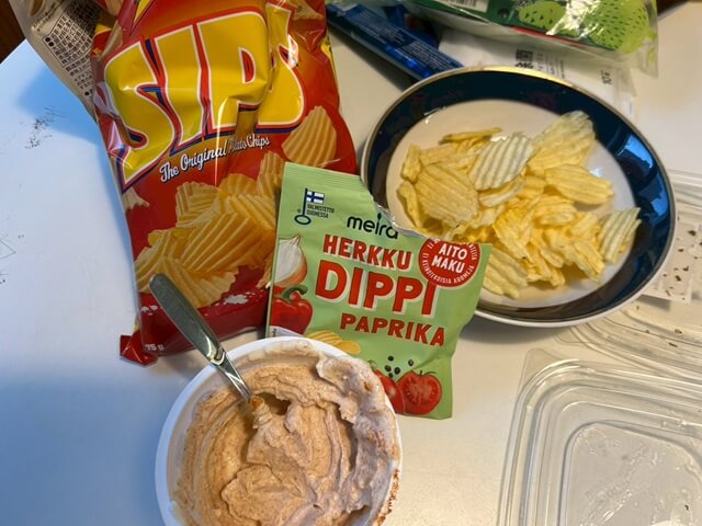 DIPPIというパウダーは水切りヨーグルトと混ぜて、ポテトチップスにディップするソースに。