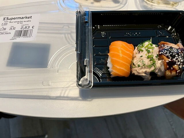 ある程度大きなスーパーなら、お寿司やおにぎりが売っているのに驚きました。