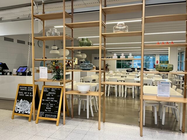 先にお会計をしてから席に案内されますが、大きなテーブルに隙間なく案内されるので、購入した荷物がなかなかかさばって大変でした。