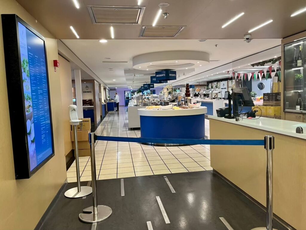 寝不足と船酔いでふらふらになりながら、荷物をまとめて夕飯と同じカフェテリアへ。